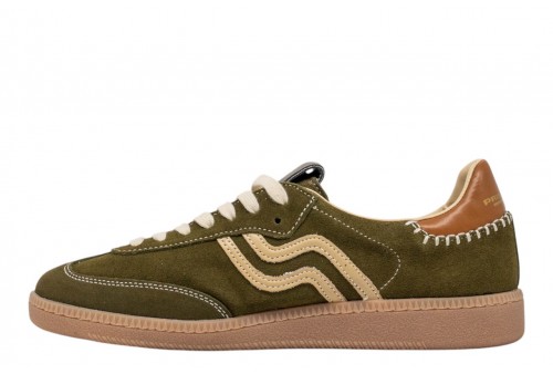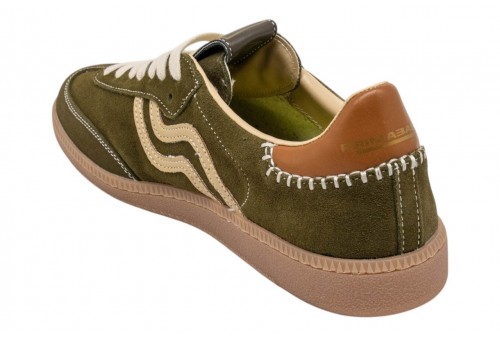 PRIMABASE UOMO 51461/010 SNEAKERS MILITARE/CUOIO. scopri le sneakers da uomo Primabase modello Polo in elegante pelle scamosciata verdone, perfette per uno stile casual-chic. Queste scarpe combinano design vintage retrò con dettagli moderni come la suola in gomma color miele e la coda di rondine in punta. Internamente foderate per garantire il massimo comfort, queste sneakers sono ideali per ogni stagione.