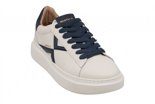 SMITH X UOMO SNEAKER COLLEGE. Con la sua silhouette decisa, i volumi ben bilanciati e la suola robusta, COLLEGE richiama l’estetica delle varsity sneakers di un tempo, ma la arricchisce con un twist contemporaneo. I contrasti cromatici, la “X” laterale che segna il passo e i dettagli curati rendono ogni combinazione colore una dichiarazione di stile. COLORE: BIANCO/BLU