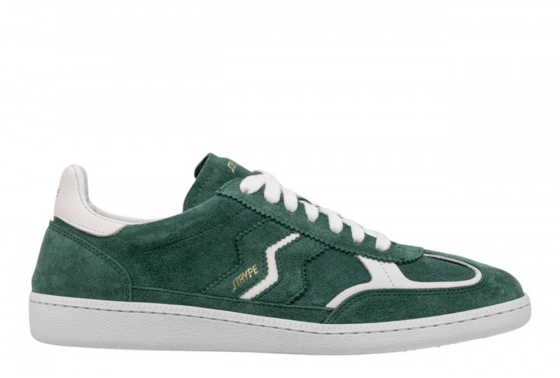 STRYPE UOMO STONE 201 M TIFFANY VERDE. Sneaker low cut realizzata in pelle scamosciata con dettagli in pelle. Spoiler a contrasto. Logo su linguetta e al lato.Fussbeth imbottito. Chiusura con stringhe.Made in Italy