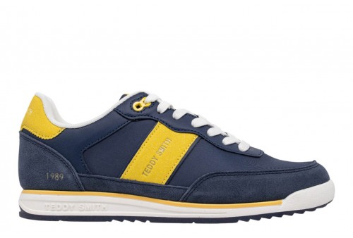 TEDDY SMITH uomo SNEAKER 120506 navy. Sneaker low cut realizzata in camoscio con dettagli in pelle a contrasto. Logo laterale. Linguetta con label logata. Spoiler in pelle . Chiusura con lacci.
