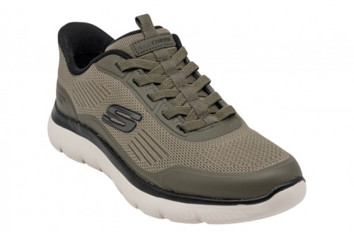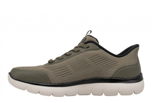 Skechers UOMO Slip-ins: Summits - Leyter 233047/OLBK. Entra nel comfort facile con i Skechers Handsfree Slip-in®: Summits - Leyter. Progettato con Heel Pillow® per il tallone, questo slip-on vegano presenta una tomaia in maglia e hotmelt con lacci elasticizzati fissi e una soletta in schiuma® a memoria raffreddata ad aria Skechers imbottita.