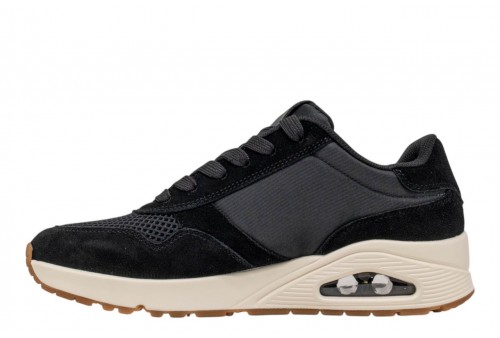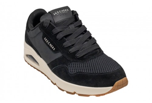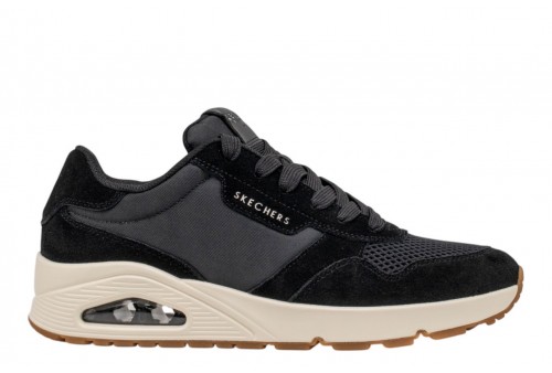 SKECHERS UOMO UNO - Vintage Air 183365/BLK. Lo stile classico di Skechers riceve un aggiornamento retrò fresco in Skechers Street™ UNO - Vintage Air. Questa sneaker alla moda con allacci presenta una tomaia vintage in camoscio e rete, una soletta in memory® foam raffreddata ad aria Skechers e una suola airbag visibile Skech-Air.