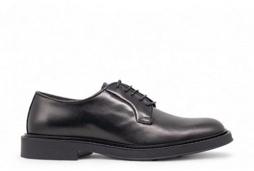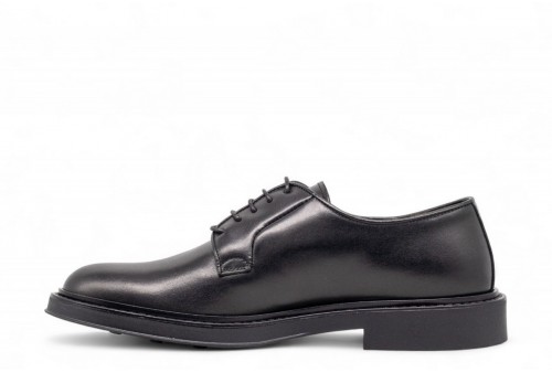 DINO DRAGHI DERBY IN PELLE. Stringata 5 fori realizzata in pelle di vitello con cuciture tono su tono.COLORE:NERO