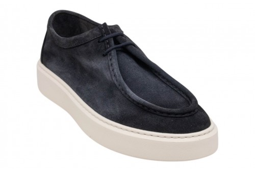 DOUCAL'S Stringata a due fori in suede notte DU3553SWIFUZ260EB15. Stringata a due fori in scamosciato di vitello di alta qualità nella tonalità blu. Il pellame, trattato con aniline tono su tono e spazzolato con lana, crea un elegante effetto dégradé che mette in risalto la profondità del colore. La cucitura a vaschetta dona carattere alla tomaia, mentre il fondo in gomma aggiunge un tocco sportivo che rende la scarpa versatile e perfetta per l’uso quotidiano. La soletta in memory foam nell’iconico giallo “Golden Cream” assicura un comfort superiore. Realizzata con lavorazione Ago e fondo incollato ad alta tenuta, garantisce resistenza e praticità nel tempo. Made in Italy.