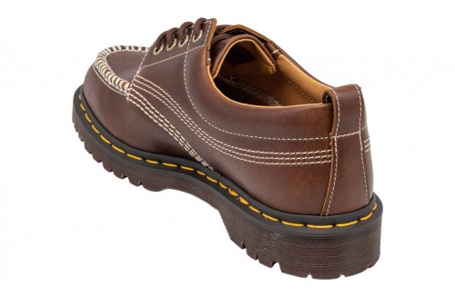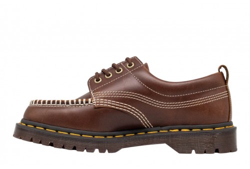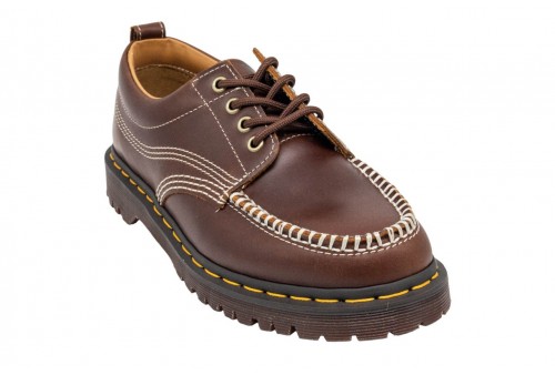 DR MARTENS Scarpe Lowell Moc Toe in pelle. Lowell a 4 occhielli. Realizzata in pelle caramellata Orleans e fornita di un colletto imbottito per il massimo del comfort, questa scarpa presenta una punta in stile mocassino. Poggia sulla robusta suola BEN ed è ulteriormente rinforzata dalle nostre caratteristiche cuciture gialle.