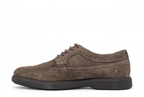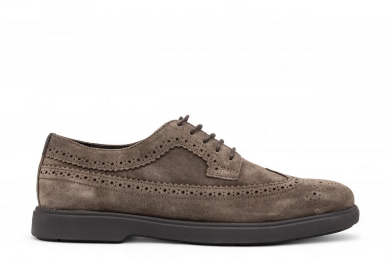 GEOX STRINGATA spherica ec17. Scarpa stringata uomo dalla straordinaria ammortizzazione, che garantisce una piacevole sensazione di morbidezza ad ogni passo. Realizzata in morbido scamosciato marrone scuro, seduce per il suo design pulito e le linee essenziali che ne esaltano l'eleganza. Spherica™ è l'alleato perfetto per affrontare le lunghe giornate in città, combinando traspirabilità e comfort in uno stile versatile che si adatta a diverse occasioni. Ammortizzazione potenziata, grazie allo Zero Shock System.COLORE: TAUPE