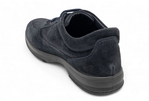 IGI E CO STRINGATA IN CAMOSCIO. Scarpa uomo realizzata in pelle scamosciata e fodera in Gore-tex. Fondo in gomma. Cuciture tono su tono. COLORE: notte