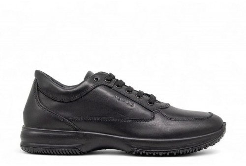 IGI E CO STRINGATA IN PELLE. Scarpa uomo realizzata in pelle e fodera in Gore-tex. Fondo in gomma. Cuciture tono su tono. COLORE: nero