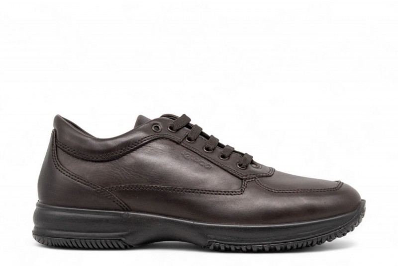 IGI E CO STRINGATA IN PELLE. Scarpa uomo realizzata in pelle e fodera in Gore-tex. Fondo in gomma. Cuciture tono su tono. COLORE: TDM